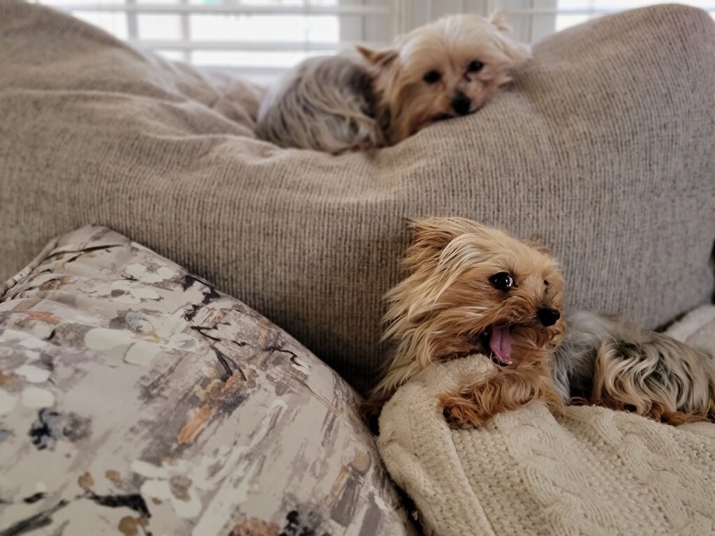 Ethel is on top of the couch, Lucy is the loud looking one. 🙂
